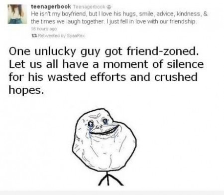 Voi fetele nu o sa intelegeti niciodata ca un barbat are ca ideal o tipa cu care sa se inteleaga de minune in primul rand, iar cele mai la indemana persoane compatibile cu acest criteriu sunt tocmai tipele pe care noi ajungem sa le placem foarte, foarte mult, pentru ca in primul rand ne intelegem de minune si dupa aceea ca ne plac ca femei. Partea a doua ca voi nu va puteti simti atrase de un tip prietenos si dragut cu voi. Din proprie experienta, de cand eram mic, pot sa spun un lucru: daca vrei o tipa, combina-te cu ea de la inceput, nici sa nu-ti treaca prin cap sa va imprieteniti o perioada ca sa vezi cum este ea in totalitate, ca you're fucked up. Si nu e vreo frustrare de a mea, pur si simplu asa functioneaza psihicul feminin. Si dupa aceea va mai luati de noi ca va judecam doar dupa infatisare... Pai v-am judeca si dupa altceva, dar asta necesita timp si o relatie de prietenie care implicit in 99% din cazuri duce direct in "friend zone". Si odata intrat acolo, acolo ramai!