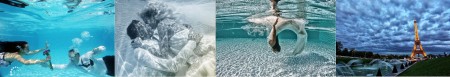 Un tanar fotograf din... Timisoara (oare de ce lucrurile importante au tangenta cu acest oras emblematic?), pre numele sau Alexandru Hreniuc (a se pastra "amprentele"!), s-a gandit sa inlocuiasca banalul cadru din studio al pozelor de nunta cu mult mai incitantul univers acvatic. Chiar daca poate parea o idee "de fite", eu am sentimentul ca exista aici o latura romantica si artistica remarcabila.....